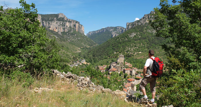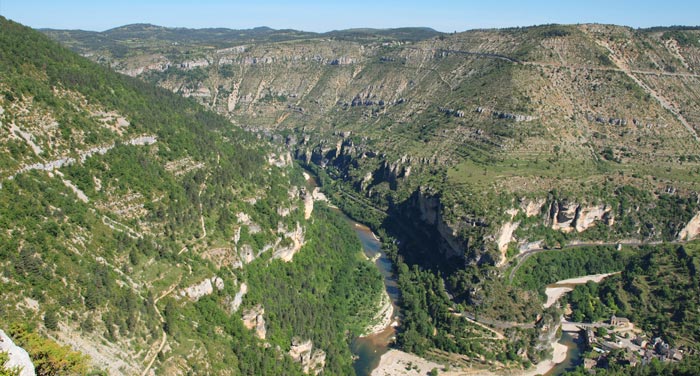 Etappe naar Caussignac Langs de oever van de Tarn met weelderige vegetatie naar een geïsoleerd gehuchtje dat alleen bereikbaar is te voet, via het water of de causse. De bewoners gebruiken een boot, kabel en gondel. Boven het dorp ligt de ruïne van een kasteel. Bij St.-Chély wordt u getrakteerd op één van de mooiste plekjes van de Gorges du Tarn. Diner en overnachting in chambres d'hotes. (5